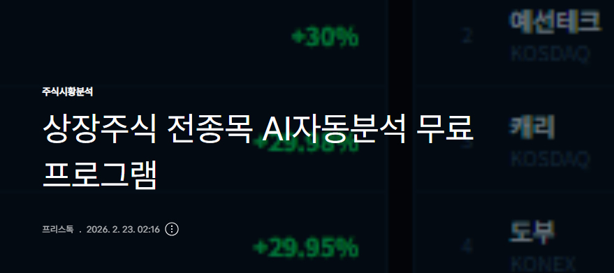 전체 상장사 2,882종목 · AI 투자분석 · 2026.02.23